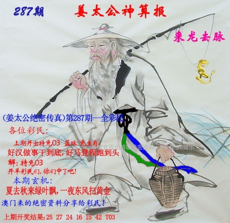 【姜太公玄机诗】开:猴34 287期:上期开出特兔03蓝球兔生肖。好汉做事干到底,好马登程跑到头 【解】:夏去秋来绿叶飘,一夜东风扫黄金 【综合七肖】兔猴龙狗虎鼠蛇 【综合五肖】兔猴龙狗虎 【综合三肖】兔猴龙 【主攻特码】15.39.10.34.02.38.08.32.04.40 ![]() |